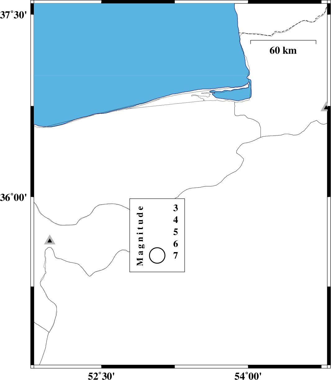 | 2011/02/22 | 03:19:58.8 | 06:49:58.8 | 36.09 | 53.31 | 17 | ML:2.9 | Mazandaran Province, 23 km East of Pol-E-Sefid | ||