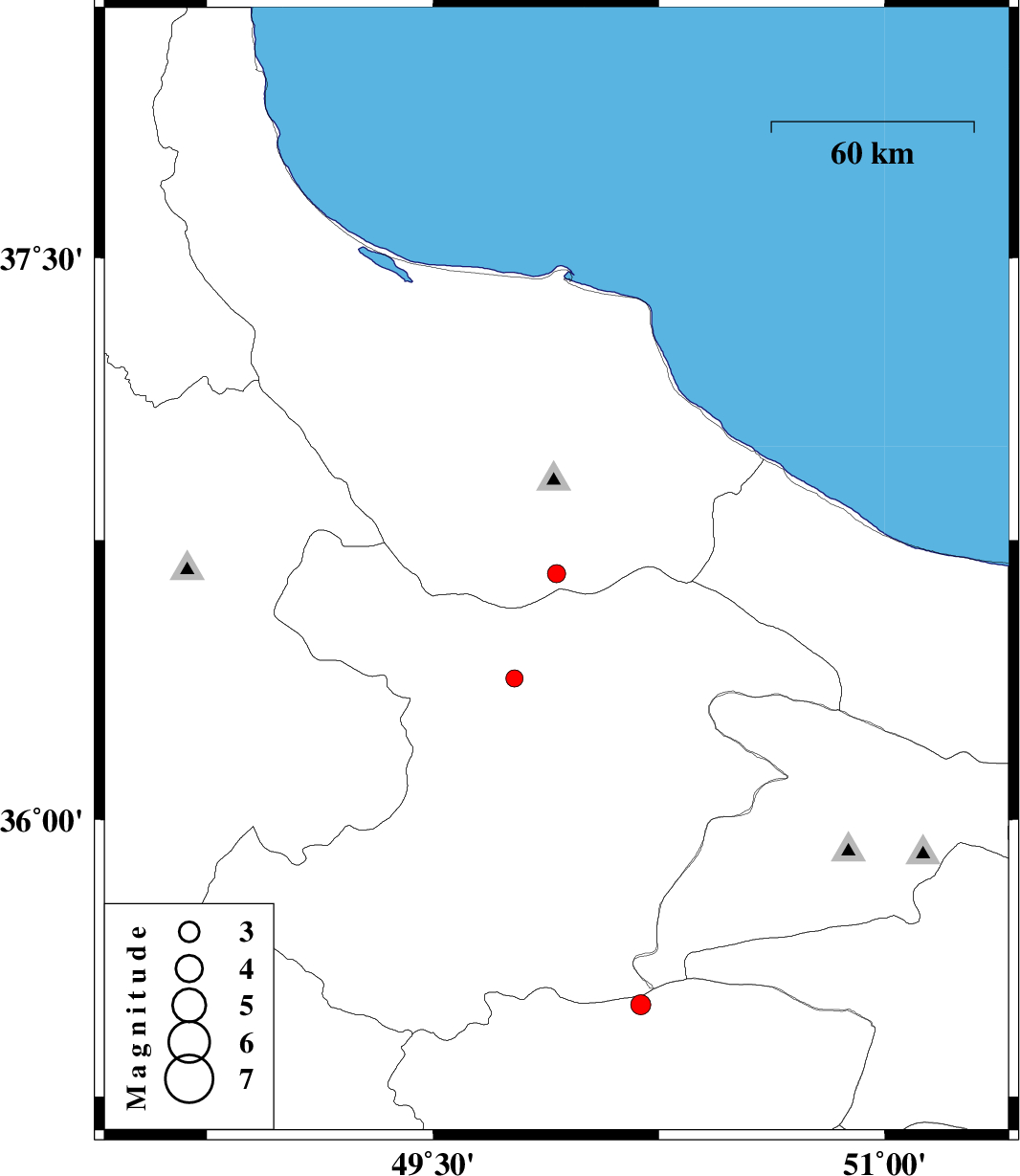| 2011/02/22 | 22:01:45.6 | 01:31:45.6 | 36.66 | 49.91 | 14 | ML:2.7 | Gilan Province, 44 km North of Qazvin | ||