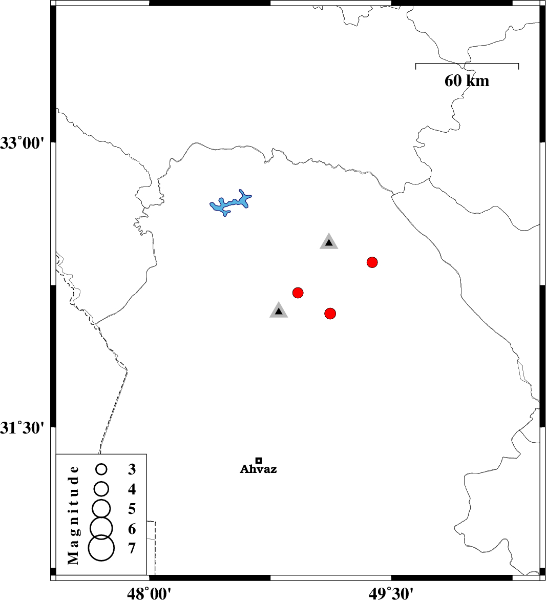 | 2011/02/24 | 06:48:18.3 | 10:18:18.3 | 32.1 | 49.12 | 14 | ML:3.1 | Khoozestan Province, 33 km South of Lali | ||