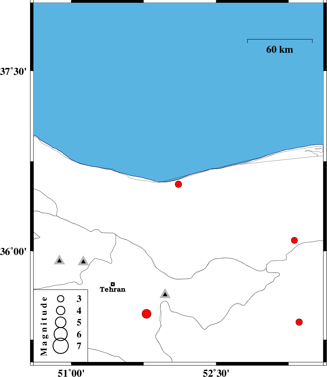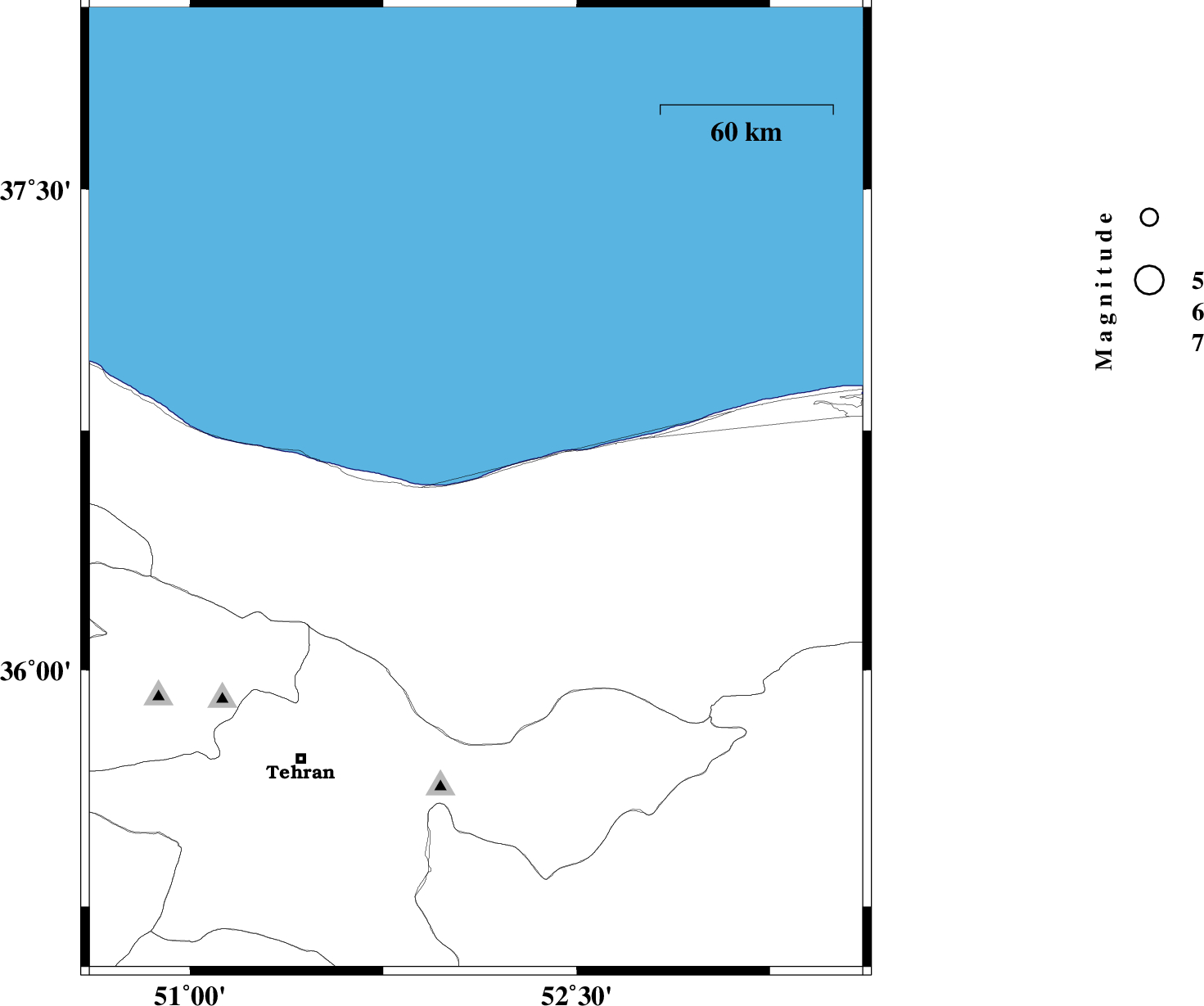 | 2011/02/25 | 16:03:11.1 | 19:33:11.1 | 36.56 | 52.11 | 46 | ML:3.1 | Mazandaran Province, 7 km Nur | ||