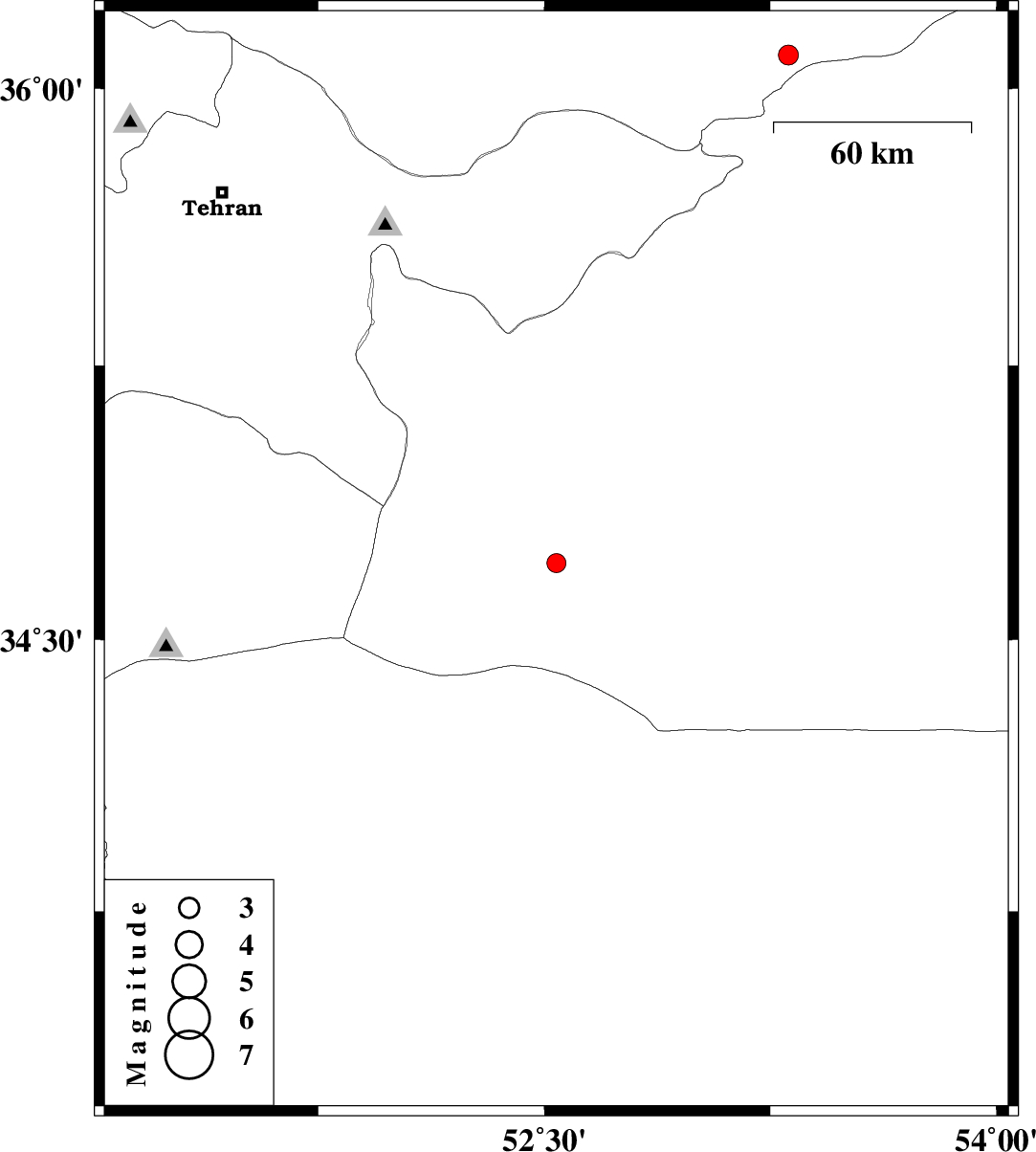 | 2011/03/01 | 09:28:31.1 | 12:58:31.1 | 34.71 | 52.54 | 18 | ML:2.8 | Semnan Province, 59 km South-East of Garmsar | ||