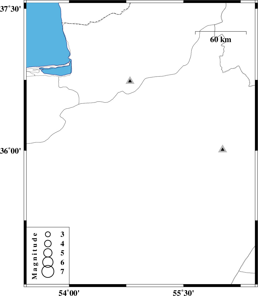 | 2011/03/07 | 06:02:03.9 | 09:32:03.9 | 36.06 | 54.94 | 31 | ML:2.8 | Semnan Province, 40 km South of Shahrud |