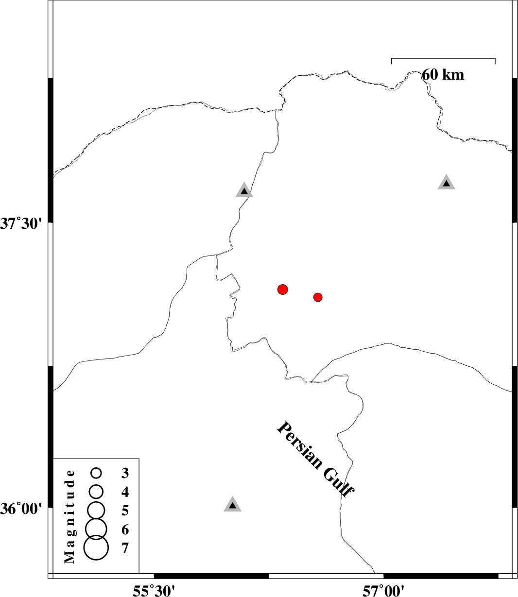 | 2011/03/07 | 06:02:03.9 | 09:32:03.9 | 36.06 | 54.94 | 31 | ML:2.8 | Semnan Province, 40 km South of Shahrud |