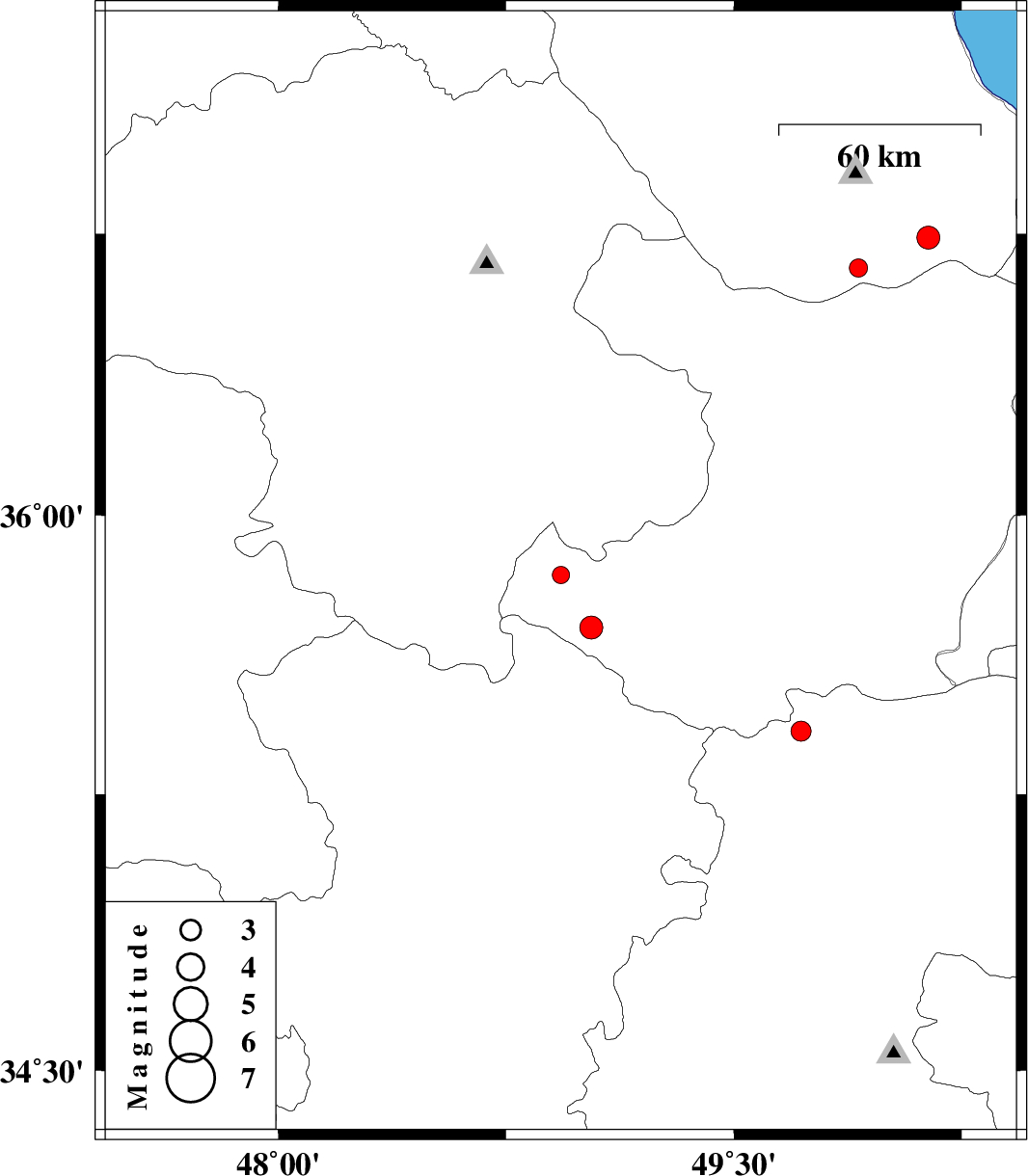 | 2011/03/15 | 14:12:16.1 | 17:42:16.1 | 36.74 | 50.14 | 16 | ML:3.4 | Gilan Province, 39 km South of Amlash | ||