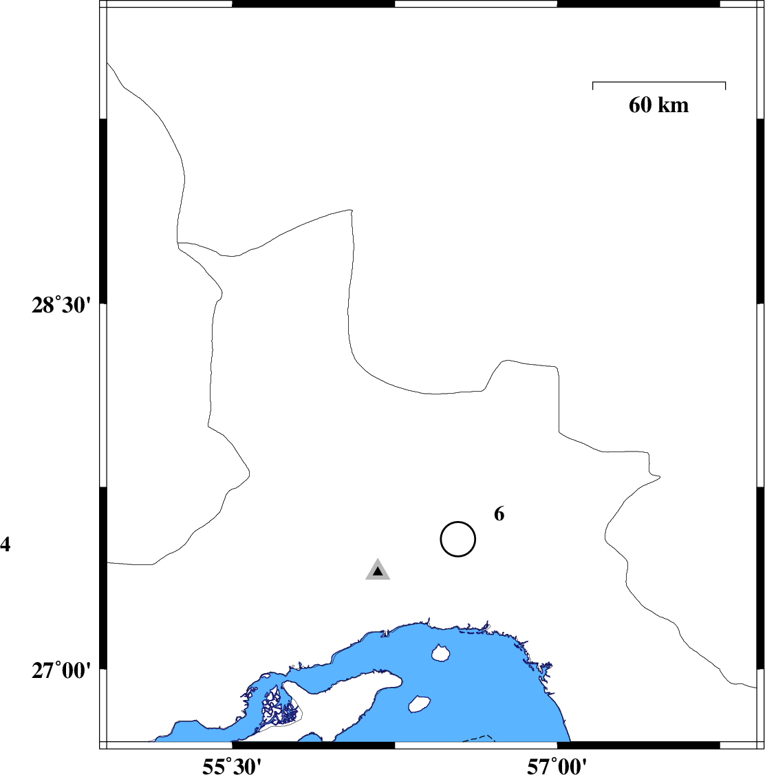 2011/03/06 00:25:24.2 03:55:24.2 27.3354.9815 ML:3.3 Hormozgan Province, 62 km North-East of Bastak