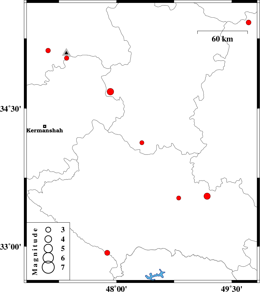 | 2011/02/27 | 13:18:25.7 | 16:48:25.7 | 34.68 | 47.92 | 42 | ML:4 | Hamedan Province, 21 km North of Kangavar |