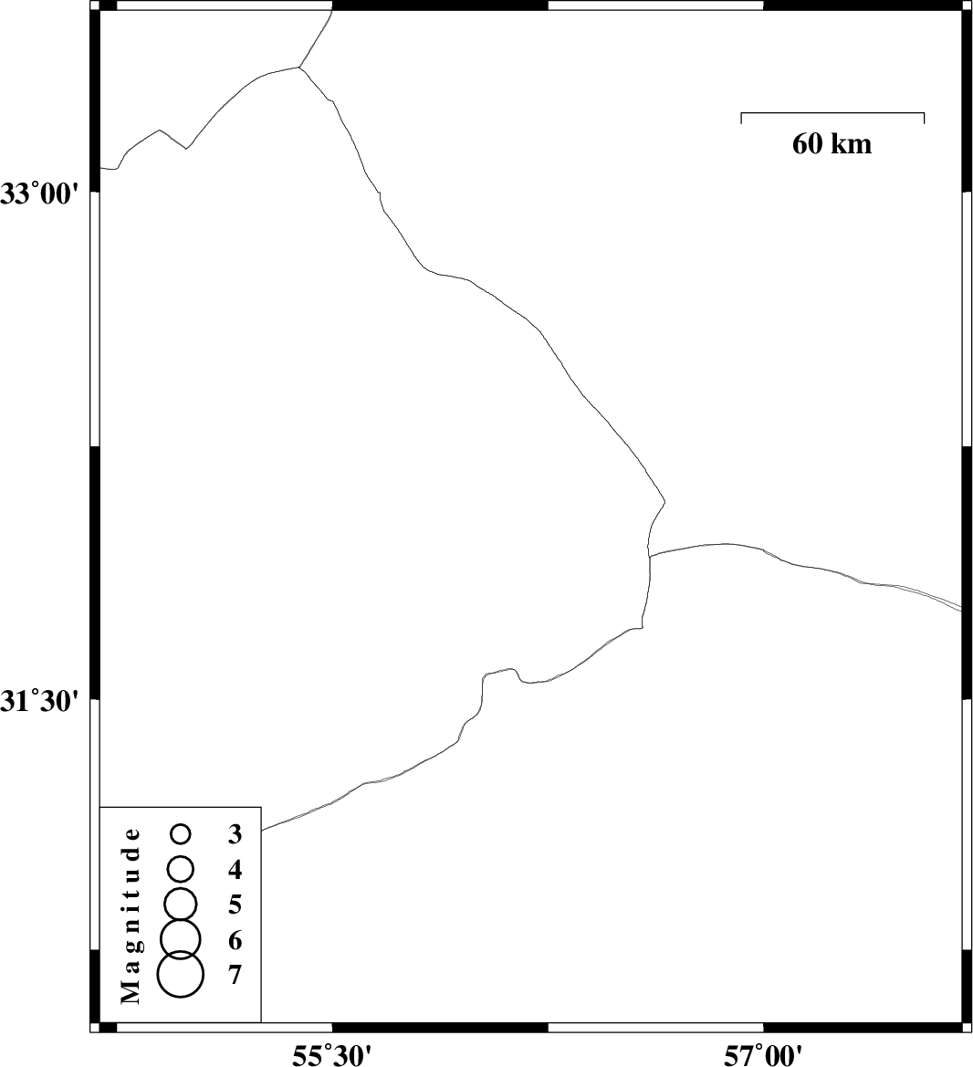 | 2011/03/29 | 05:00:40.0 | 09:30:40.0 | 32.03 | 56.19 | 16 | ML:3 | Yazd Province, 88 km North-East of Bafq |