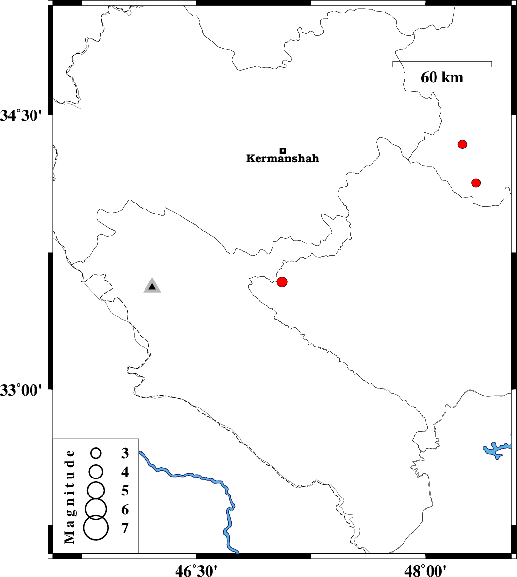 | 2011/04/04 | 17:53:30.0 | 22:23:30.0 | 33.59 | 47.06 | 18 | ML:2.9 | Lorestan Province, 52 km West of Kuhdasht | ||