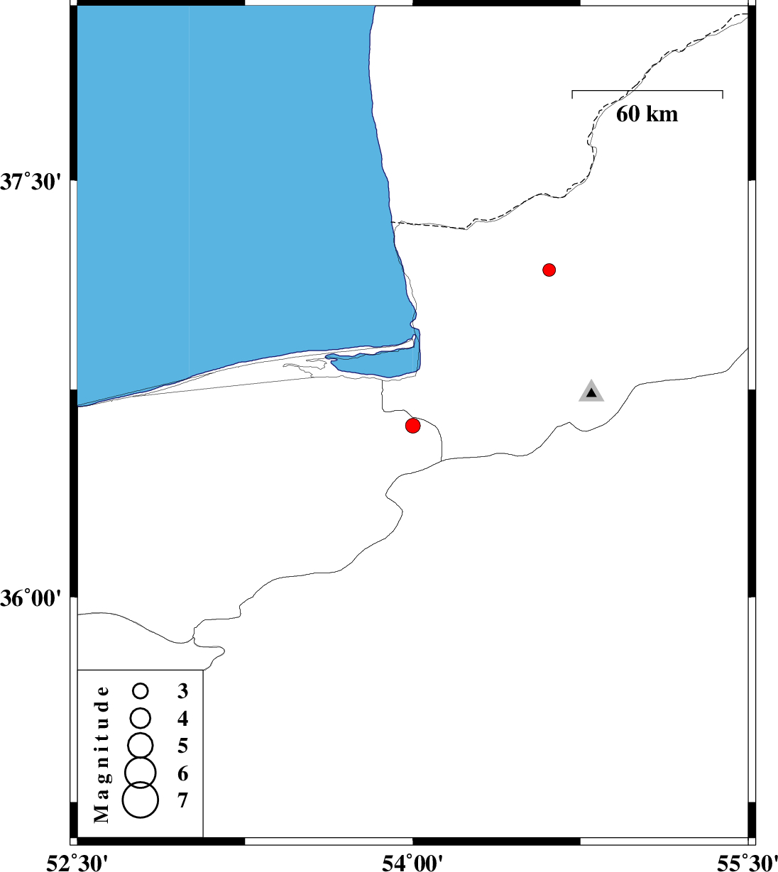 | 2011/04/08 | 16:20:57.5 | 20:50:57.5 | 36.62 | 54 | 14 | ML:3 | Mazandaran Province, 17 km South of Bandar-e gaz | ||