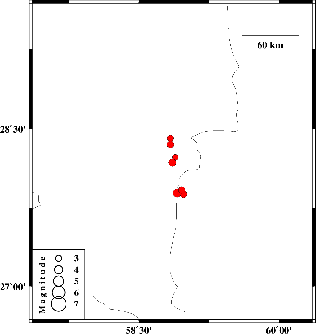 2011/04/09 19:55:57.6 00:25:57.6 28.4158.8414 ML:2.9 Kerman Province, 92 km South-East of Bam