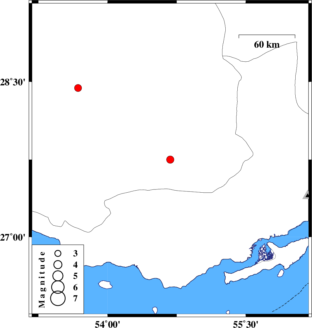 | 2011/04/17 | 20:36:16.3 | 01:06:16.3 | 27.75 | 54.68 | 16 | ML:3.7 | Fars Province, 35 km East of Lar | ||