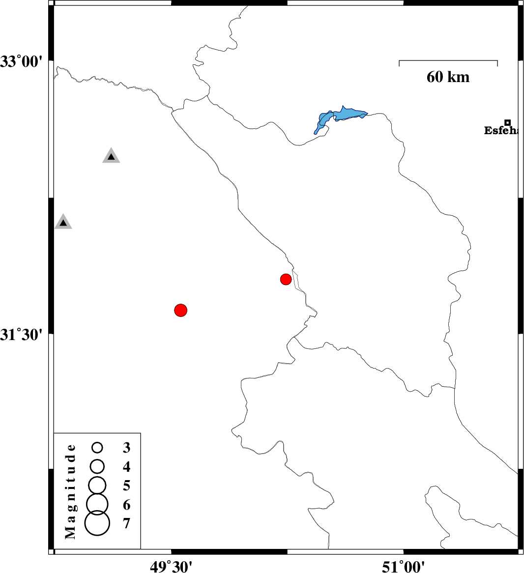 | 2011/04/19 | 15:43:13.6 | 20:13:13.6 | 31.63 | 49.56 | 14 | ML:3.7 | Khoozestan Province, 39 km North of Ramhormoz |