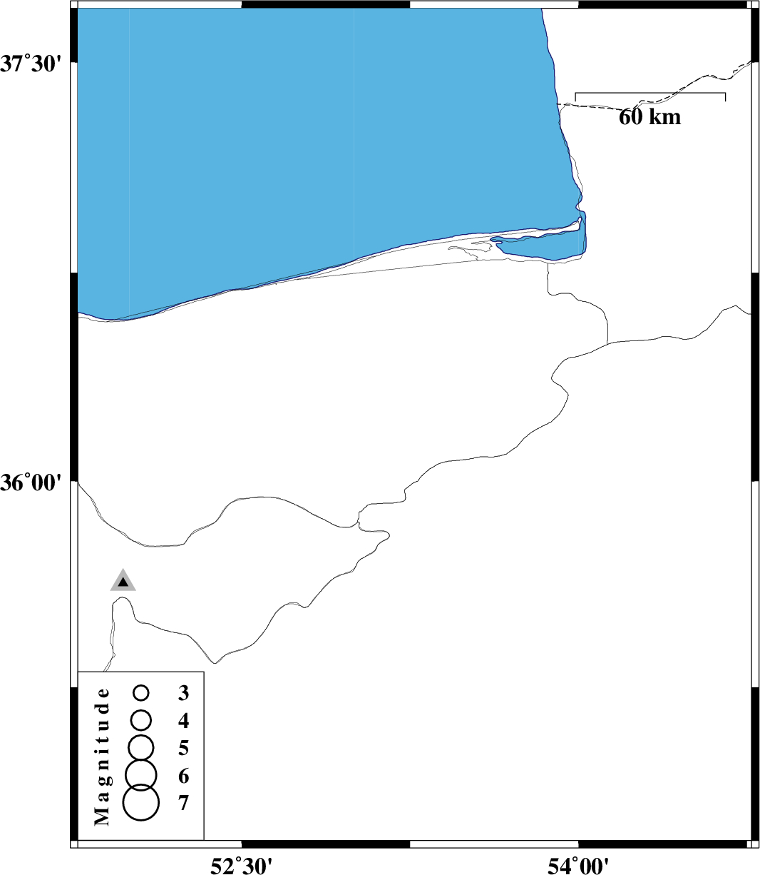 | 2011/05/06 | 00:49:20.2 | 05:19:20.2 | 36.19 | 53.27 | 15 | ML:3 | Mazandaran Province, 21 km East of Pol-E-Sefid |