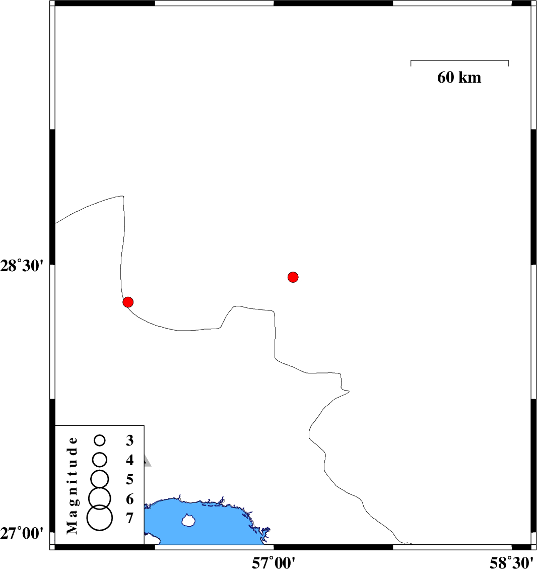 | 2011/05/02 | 19:40:07.5 | 00:10:07.5 | 28.29 | 56.08 | 14 | ML:3 | Kerman Province, 17 km East of Hajiabad |