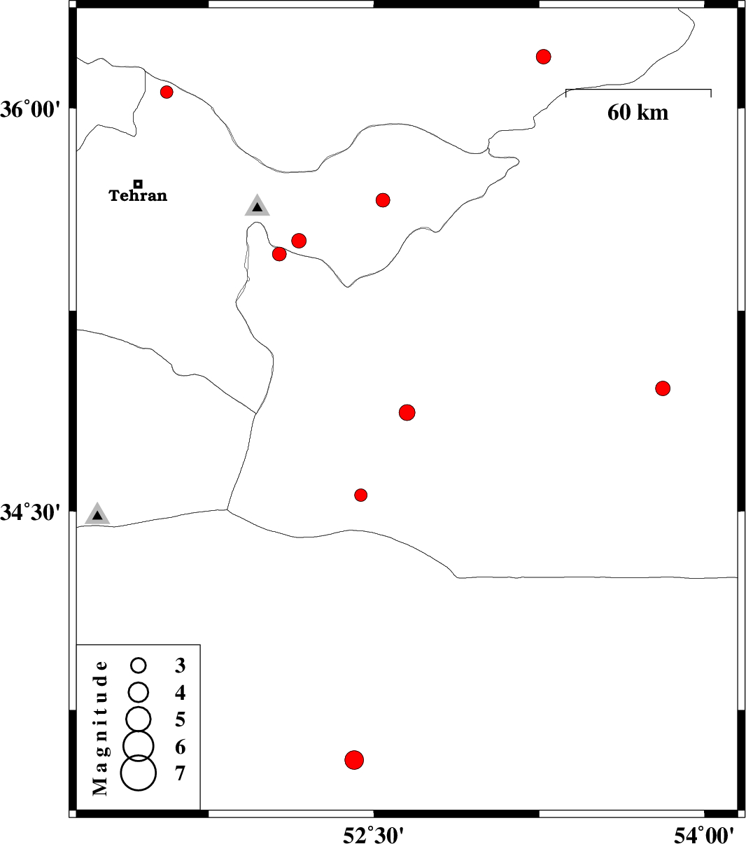 | 2011/05/08 | 04:02:58.5 | 08:32:58.5 | 34.87 | 52.65 | 15 | ML:3.2 | Semnan Province, 49 km South-East of Garmsar | ||