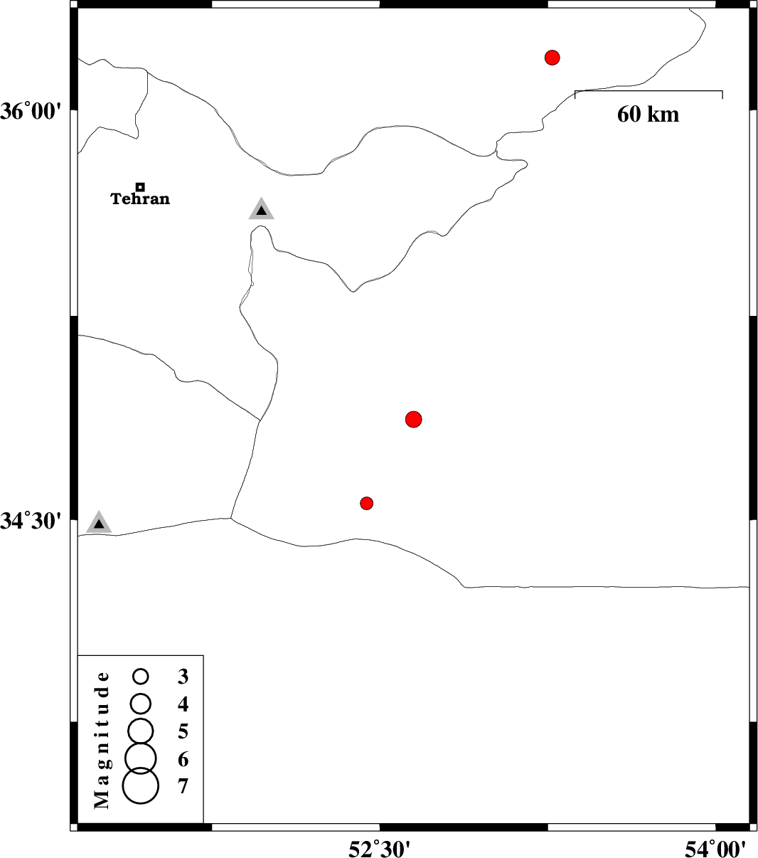 | 2011/05/08 | 04:02:58.5 | 08:32:58.5 | 34.87 | 52.65 | 15 | ML:3.2 | Semnan Province, 49 km South-East of Garmsar | ||