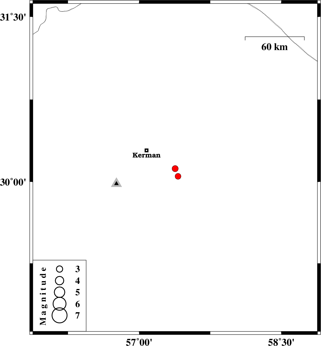 | 2011/05/11 | 20:14:48.5 | 00:44:48.5 | 30.12 | 57.38 | 6 | ML:3 | Kerman Province, 35 km South-East of Kerman |
