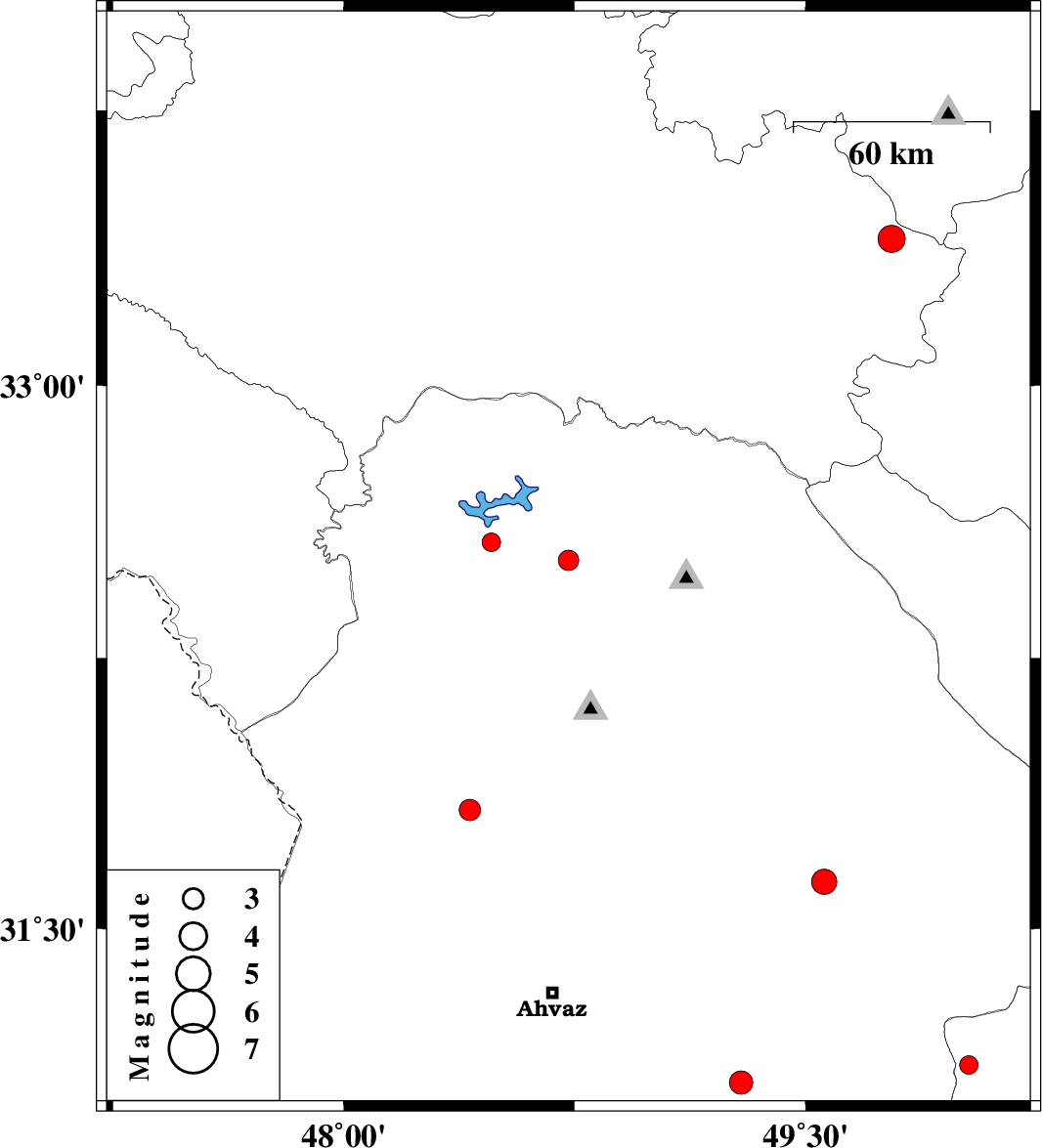 | 2011/05/14 | 09:43:40.4 | 14:13:40.4 | 32.52 | 48.73 | 14 | ML:3 | Khoozestan Province, 36 km East of Andimeshk | ||