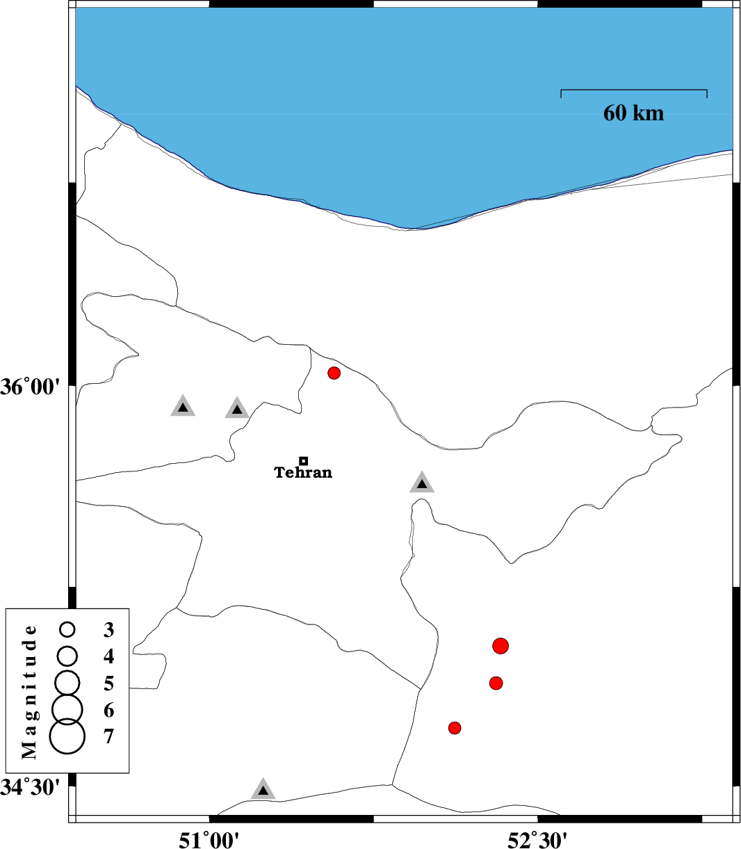 | 2011/05/08 | 04:02:58.5 | 08:32:58.5 | 34.87 | 52.65 | 15 | ML:3.2 | Semnan Province, 49 km South-East of Garmsar |