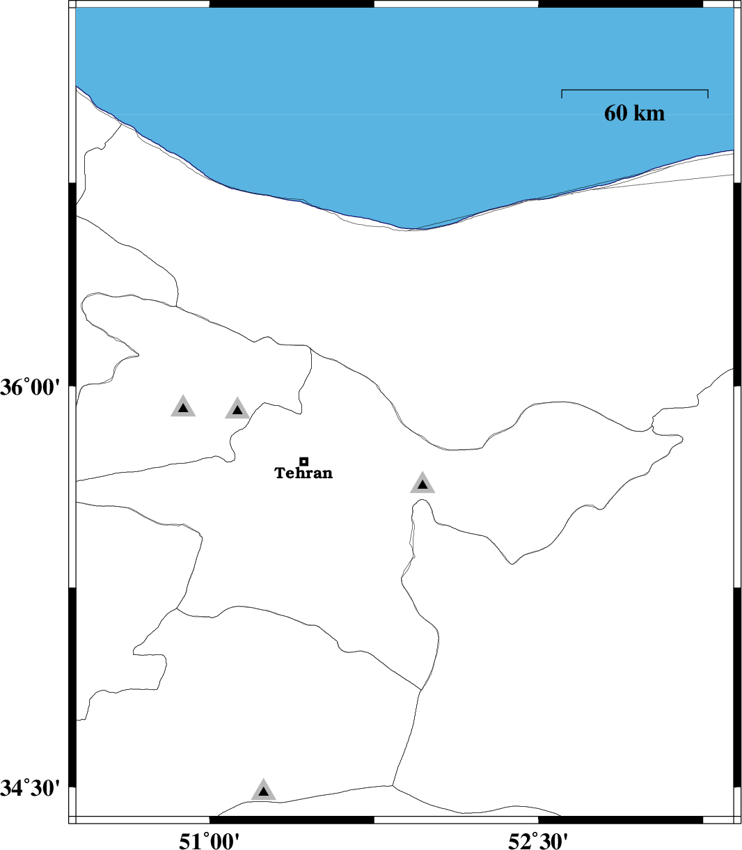 | 2011/05/15 | 11:22:31.3 | 15:52:31.3 | 35.89 | 51.89 | 33 | ML:2.5 | Mazandaran Province, 26 km North-West of Damavand | ||