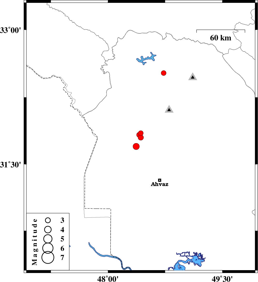 | 2011/05/14 | 09:43:40.4 | 14:13:40.4 | 32.52 | 48.73 | 14 | ML:3 | Khoozestan Province, 36 km East of Andimeshk | ||