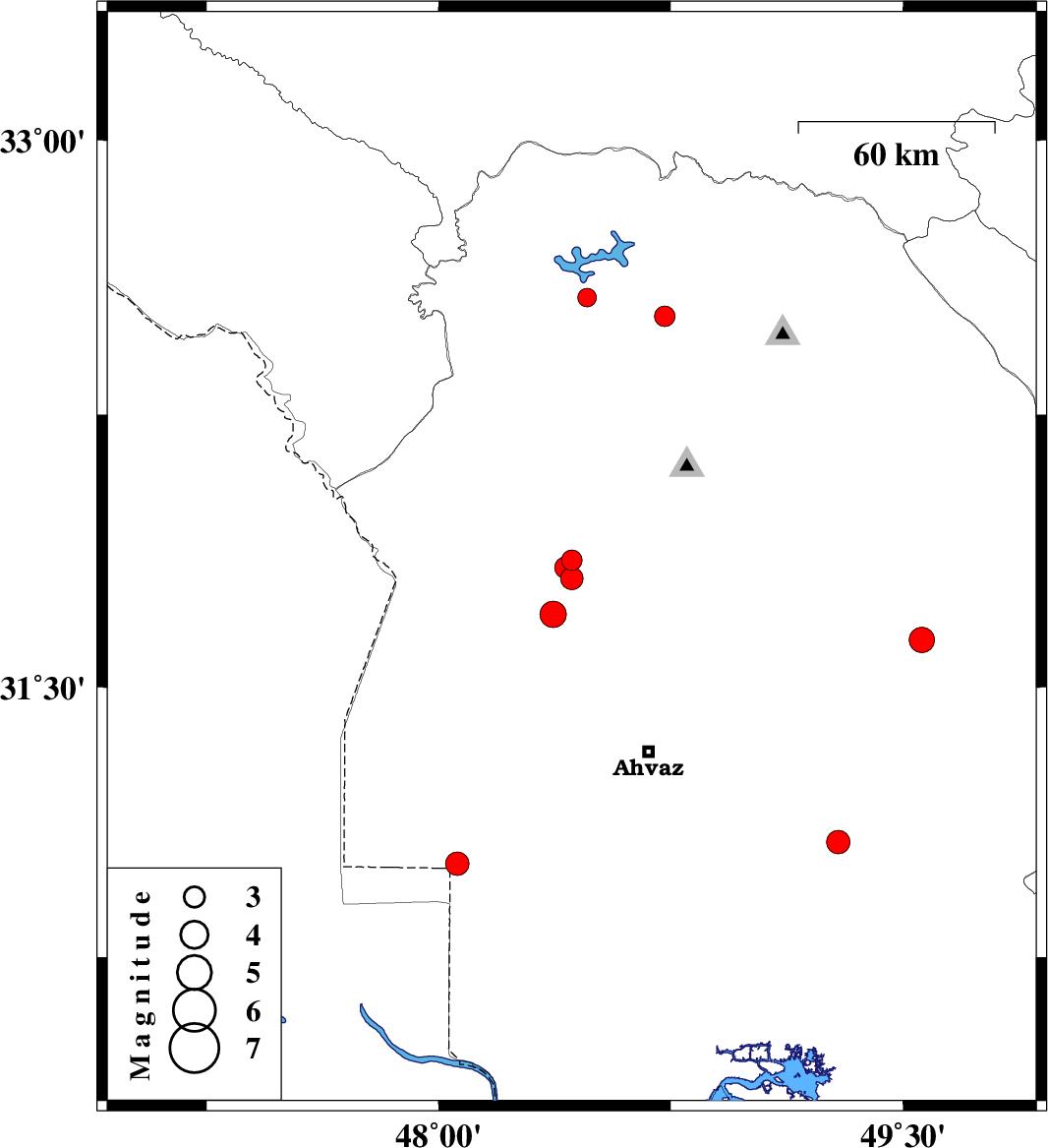 | 2011/05/14 | 09:43:40.4 | 14:13:40.4 | 32.52 | 48.73 | 14 | ML:3 | Khoozestan Province, 36 km East of Andimeshk | ||