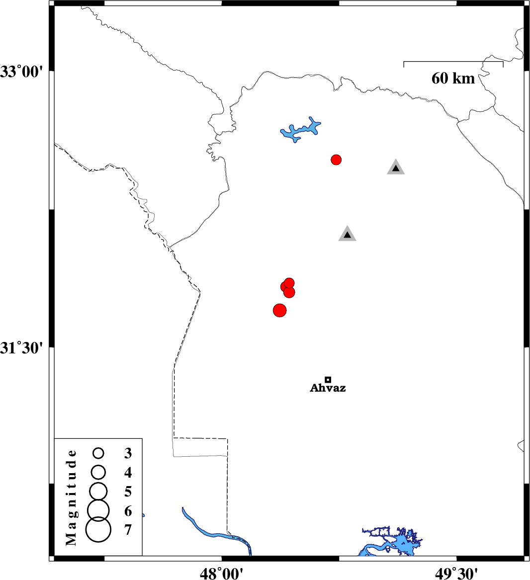 | 2011/05/14 | 09:43:40.4 | 14:13:40.4 | 32.52 | 48.73 | 14 | ML:3 | Khoozestan Province, 36 km East of Andimeshk | ||