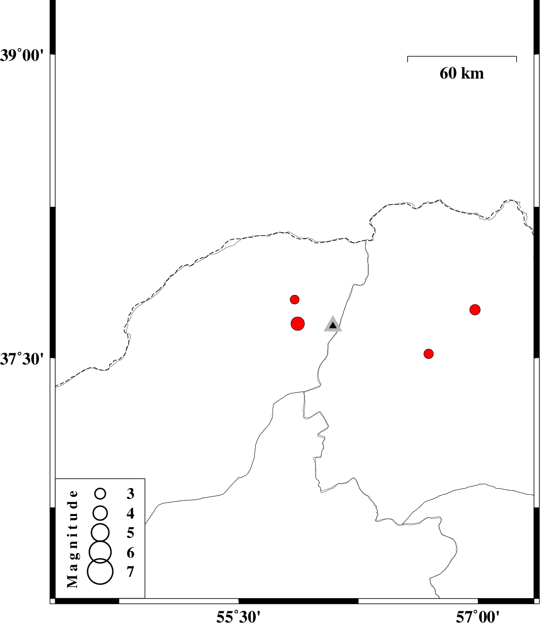 | 2011/05/27 | 20:15:24.3 | 00:45:24.3 | 37.79 | 55.85 | 20 | ML:2.5 | Golestan Province, 55 km North-East of Kalaleh | ||