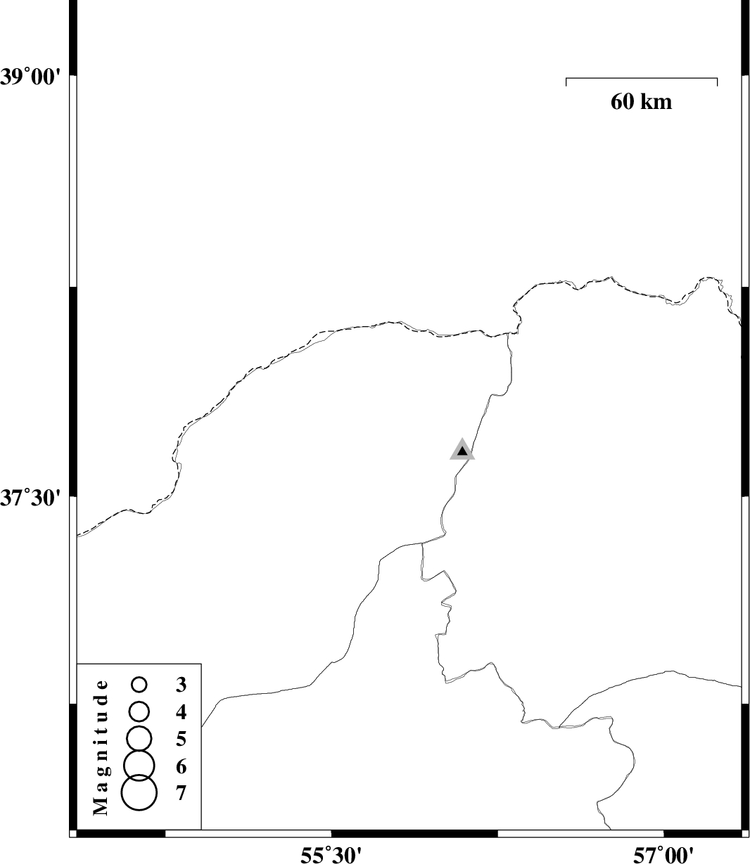 | 2011/05/27 | 20:15:24.3 | 00:45:24.3 | 37.79 | 55.85 | 20 | ML:2.5 | Golestan Province, 55 km North-East of Kalaleh |