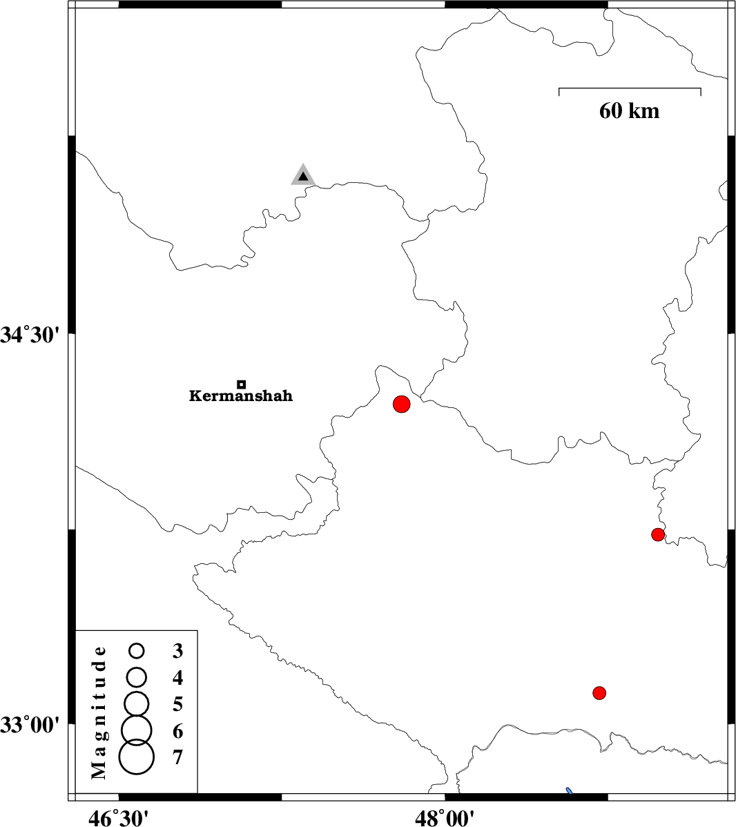 | 2011/05/30 | 20:19:11.1 | 00:49:11.1 | 34.23 | 47.8 | 18 | ML:3.5 | Lorestan Province, 22 km East of Harsin | ||