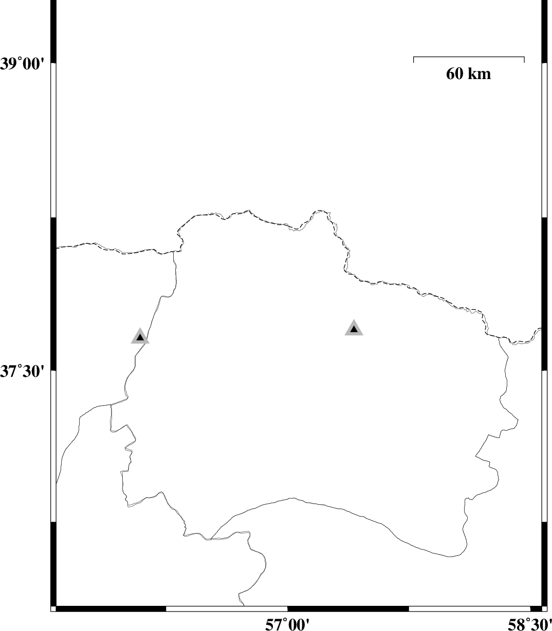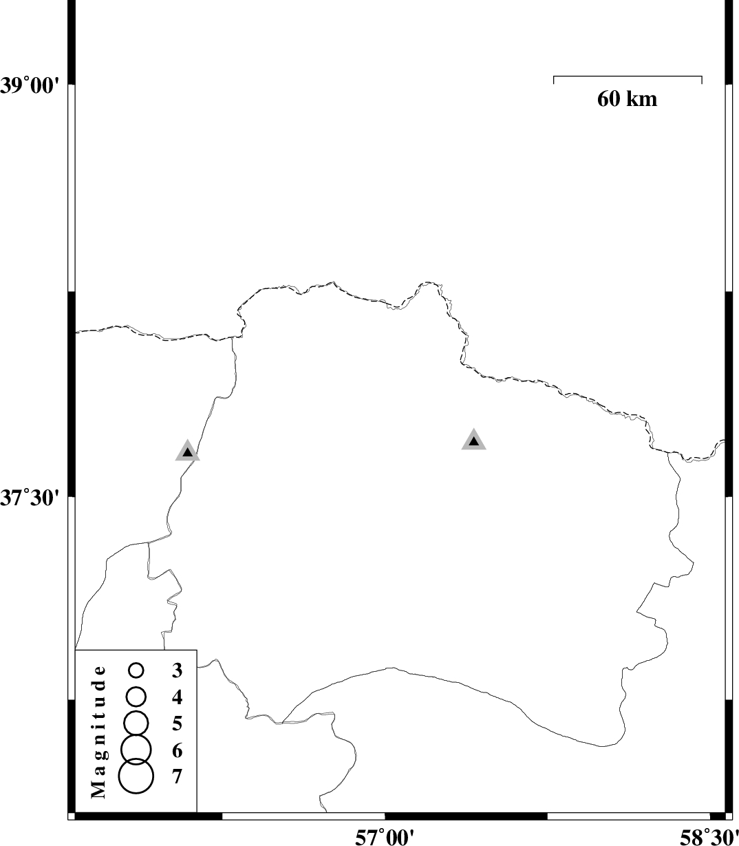 | 2011/06/04 | 21:45:54.2 | 02:15:54.2 | 37.83 | 57.07 | 42 | ML:3 | Khorasan(north) Province, 33 km North-East of Ashkhaneh |