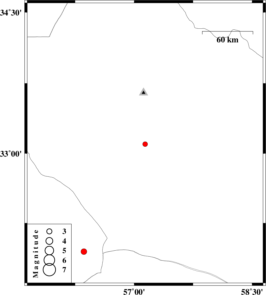 | 2011/06/11 | 02:49:18.5 | 07:19:18.5 | 33.1 | 57.14 | 14 | ML:2.8 | Yazd Province, 59 km South-East of Tabas | ||