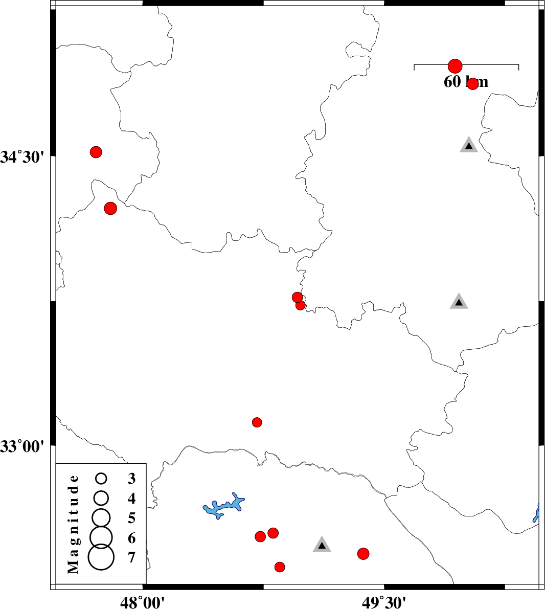 2011/05/30 | 20:19:11.1 | 00:49:11.1 | 34.23 | 47.8 | 18 | ML:3.5 | Lorestan Province, 22 km East of Harsin | ||