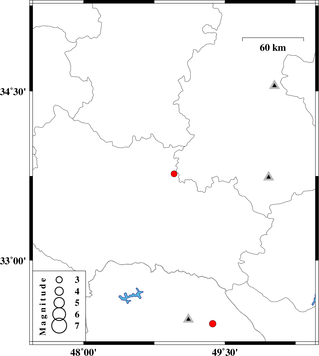 2011/06/13 | 10:08:12.6 | 14:38:12.6 | 33.77 | 48.96 | 15 | ML:3 | Lorestan Province, 23 km South-East of Borujerd | ||