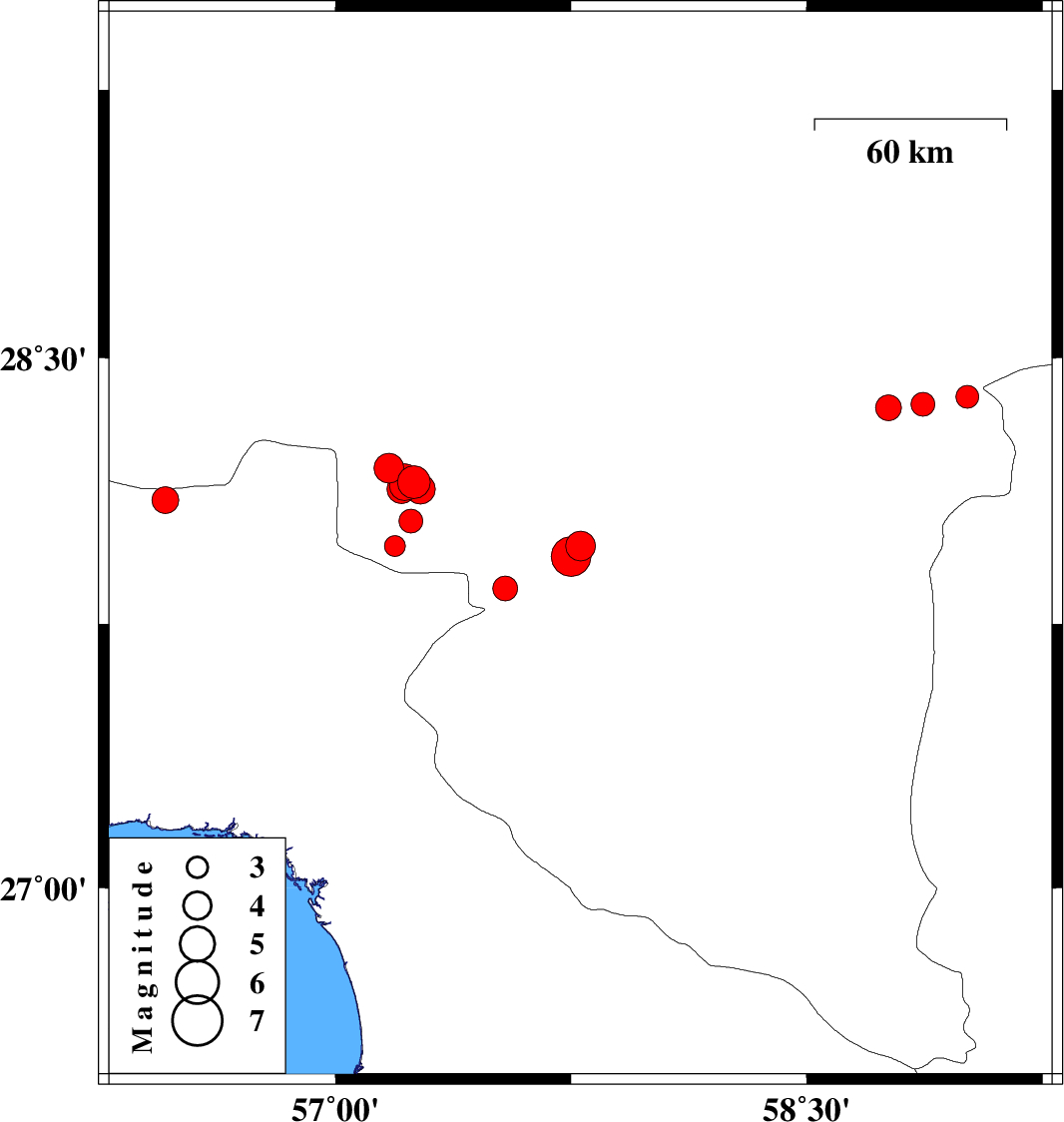 2011/06/15 05:09:00.9 09:39:00.9 27.9757.1945 ML:3 Kerman Province, 49 km West of Kahnuj