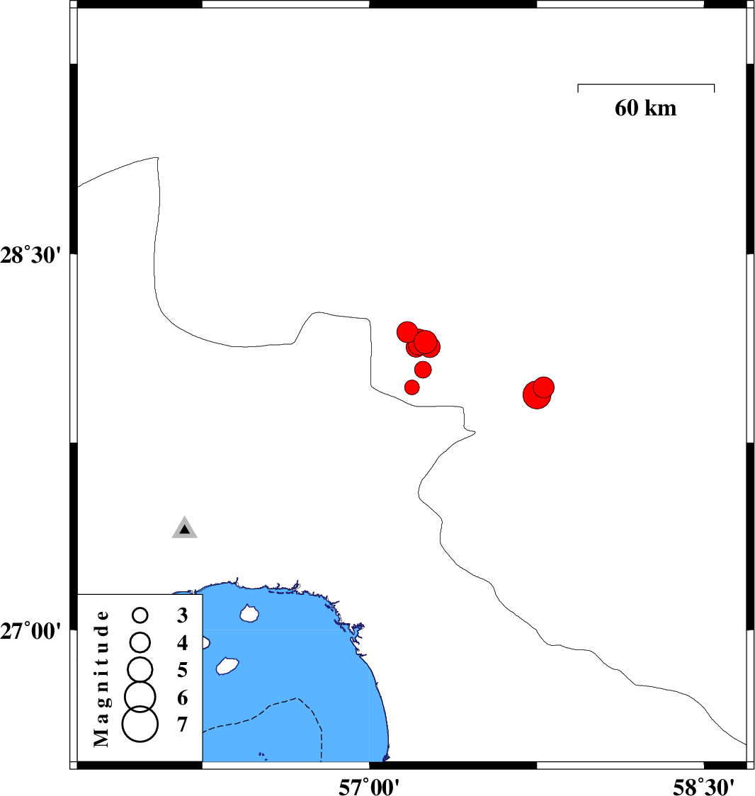 2011/06/15 05:09:00.9 09:39:00.9 27.9757.1945 ML:3 Kerman Province, 49 km West of Kahnuj