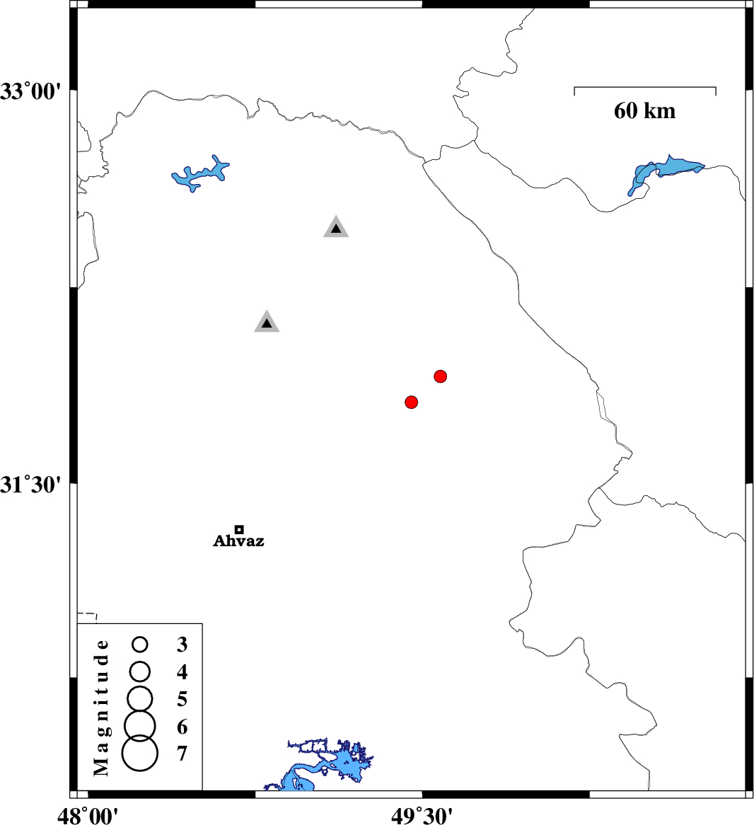 | 2011/06/28 | 22:59:00.3 | 03:29:00.3 | 31.81 | 49.45 | 14 | ML:2.6 | Khoozestan Province, 20 km South-East of Masjed Soleyman |