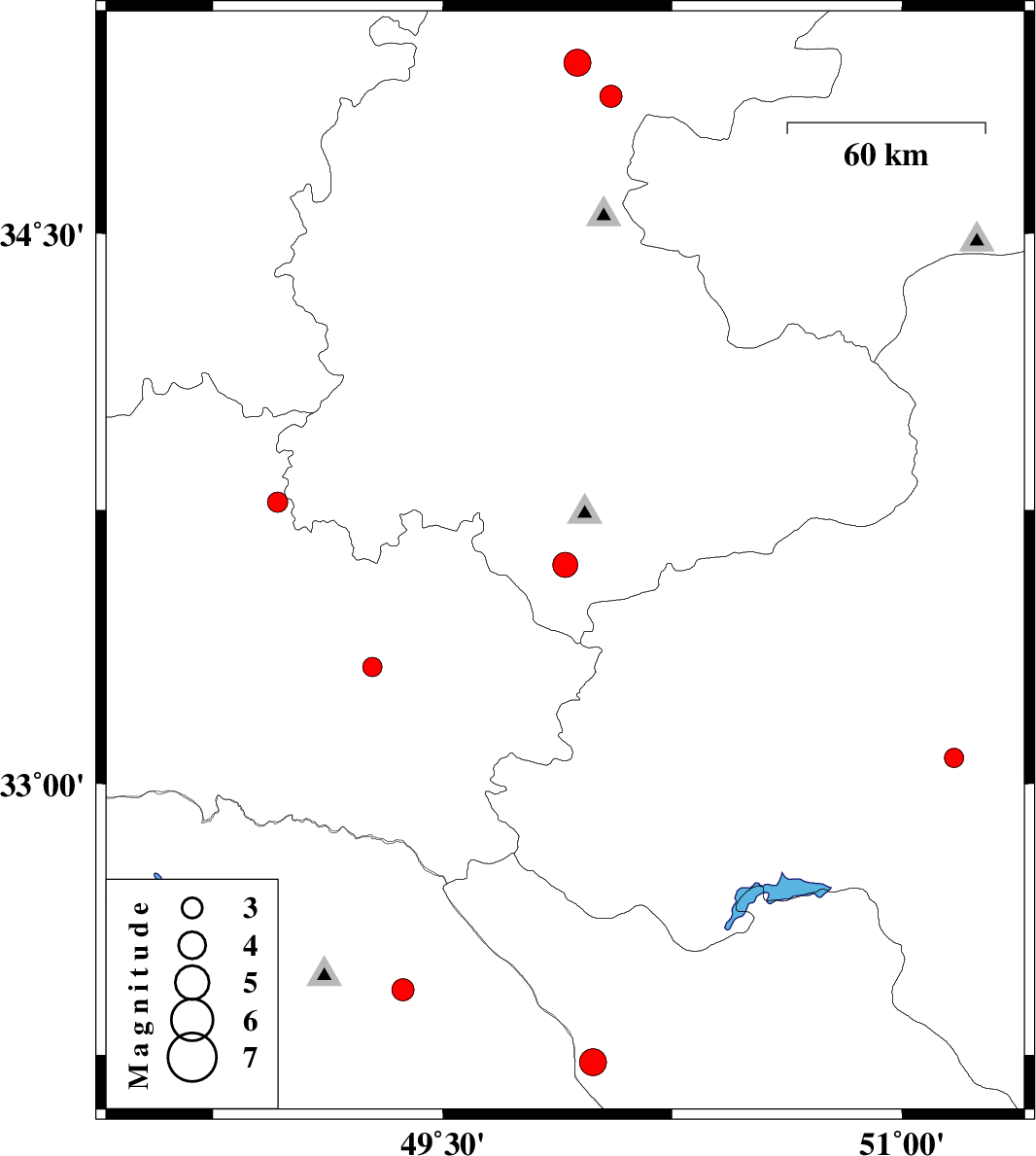 | 2011/06/13 | 10:08:12.6 | 14:38:12.6 | 33.77 | 48.96 | 15 | ML:3 | Lorestan Province, 23 km South-East of Borujerd | ||