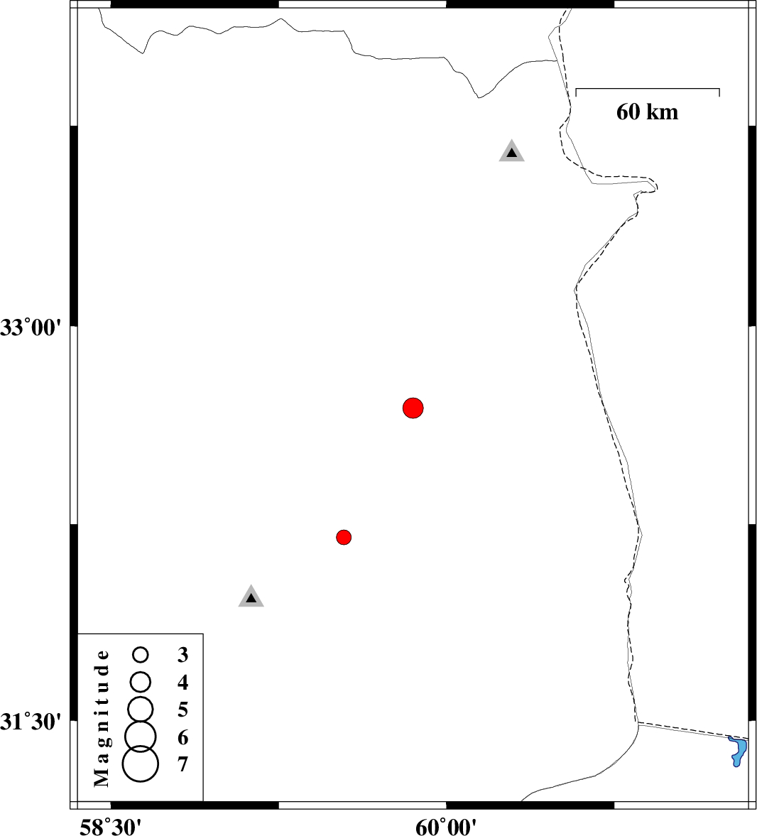 | 2011/06/27 | 11:12:29.8 | 15:42:29.8 | 32.2 | 59.54 | 16 | ML:3 | Khorasan(south) Province, 53 km South-West of Sarbisheh |