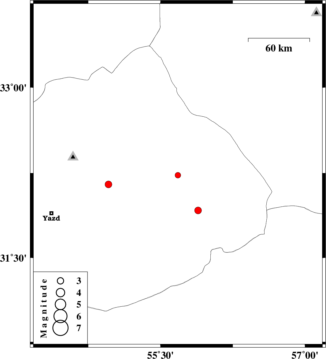 | 2011/07/03 | 05:53:04.0 | 10:23:04.0 | 32.15 | 54.96 | 40 | ML:3.3 | Yazd Province, 63 km North-East of Yazd |