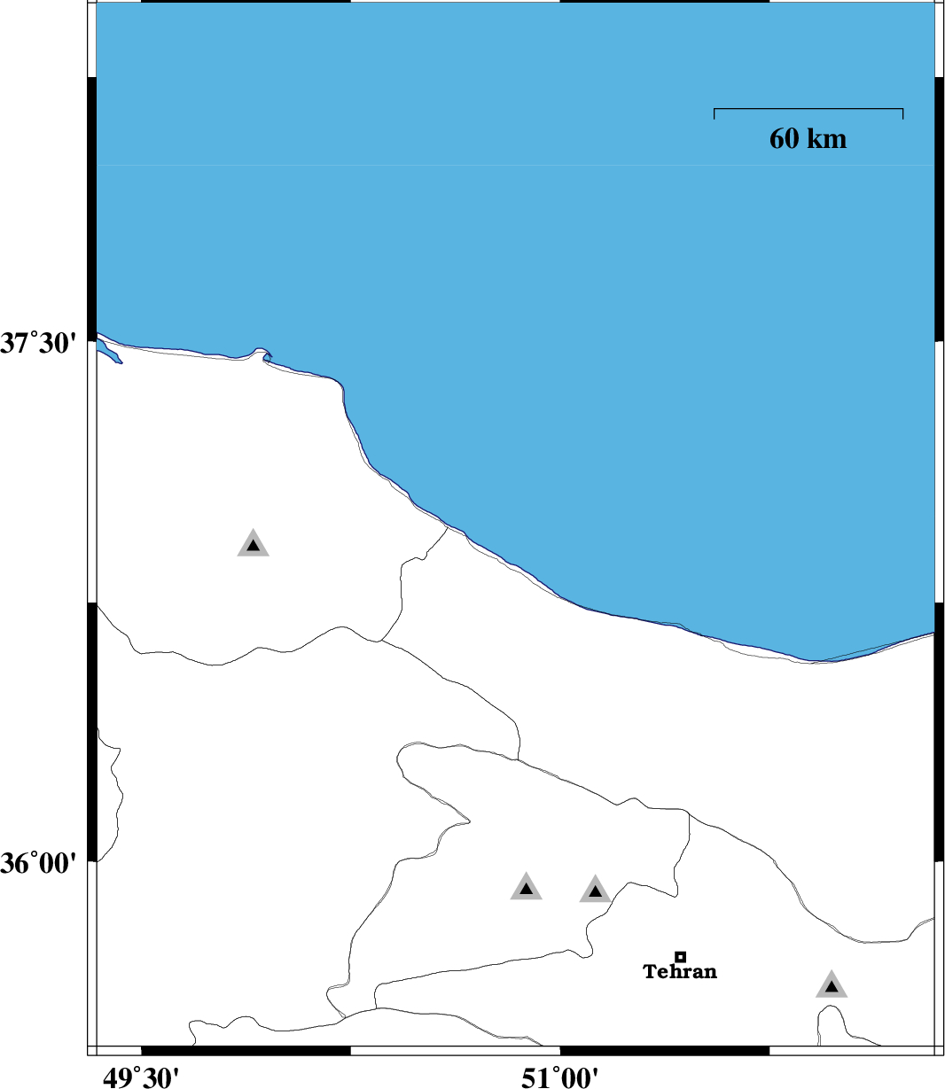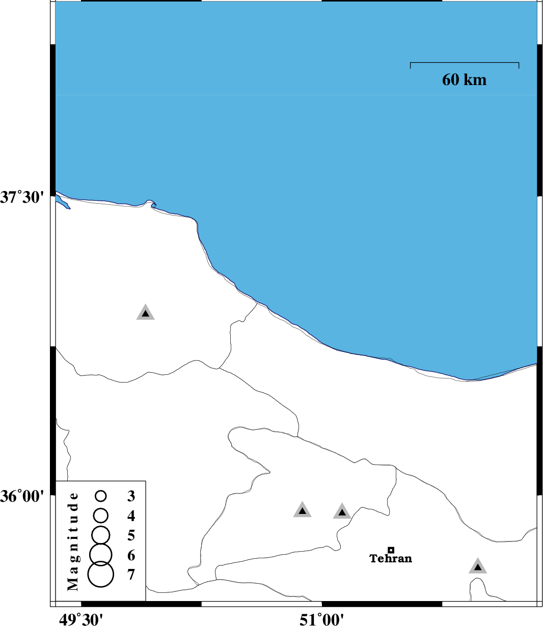 | 2011/07/08 | 07:21:27.4 | 11:51:27.4 | 36.96 | 50.84 | 7 | ML:3.3 | Caspian Sea, 17 km North of Tonekabon |