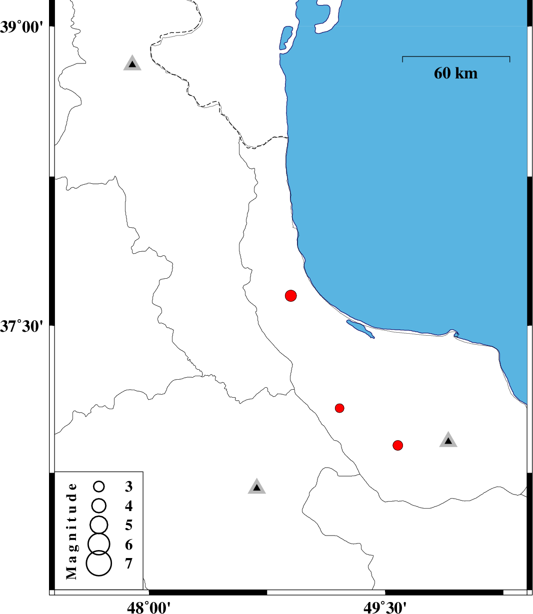 | 2011/07/08 | 08:53:55.1 | 13:23:55.1 | 37.65 | 48.9 | 15 | ML:3.2 | Gilan Province, 16 km South of Hashtpar | ||
