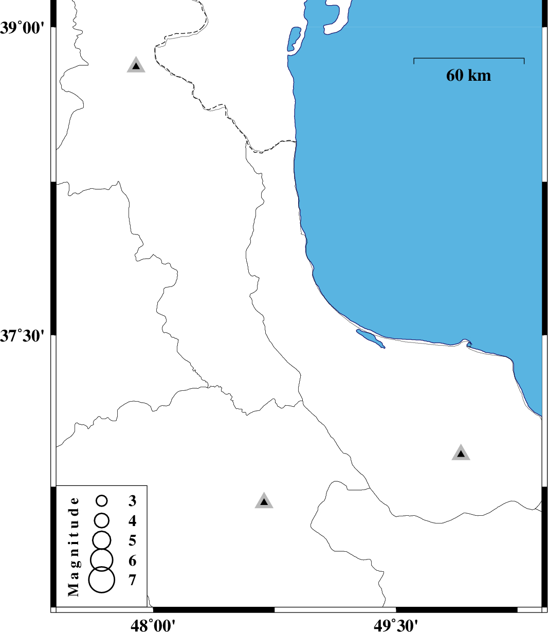 | 2011/07/08 | 08:53:55.1 | 13:23:55.1 | 37.65 | 48.9 | 15 | ML:3.2 | Gilan Province, 16 km South of Hashtpar |