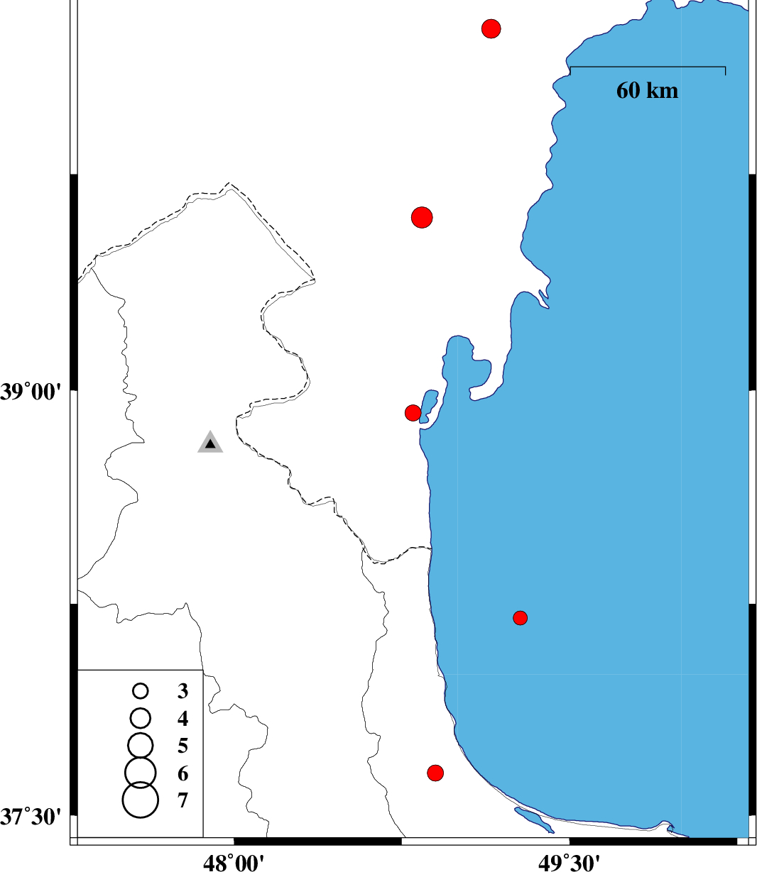 2011/07/09 00:35:08.3 05:05:08.3 38.249.2825 ML:2.8 Caspian Sea, 44 km South-East of Astara