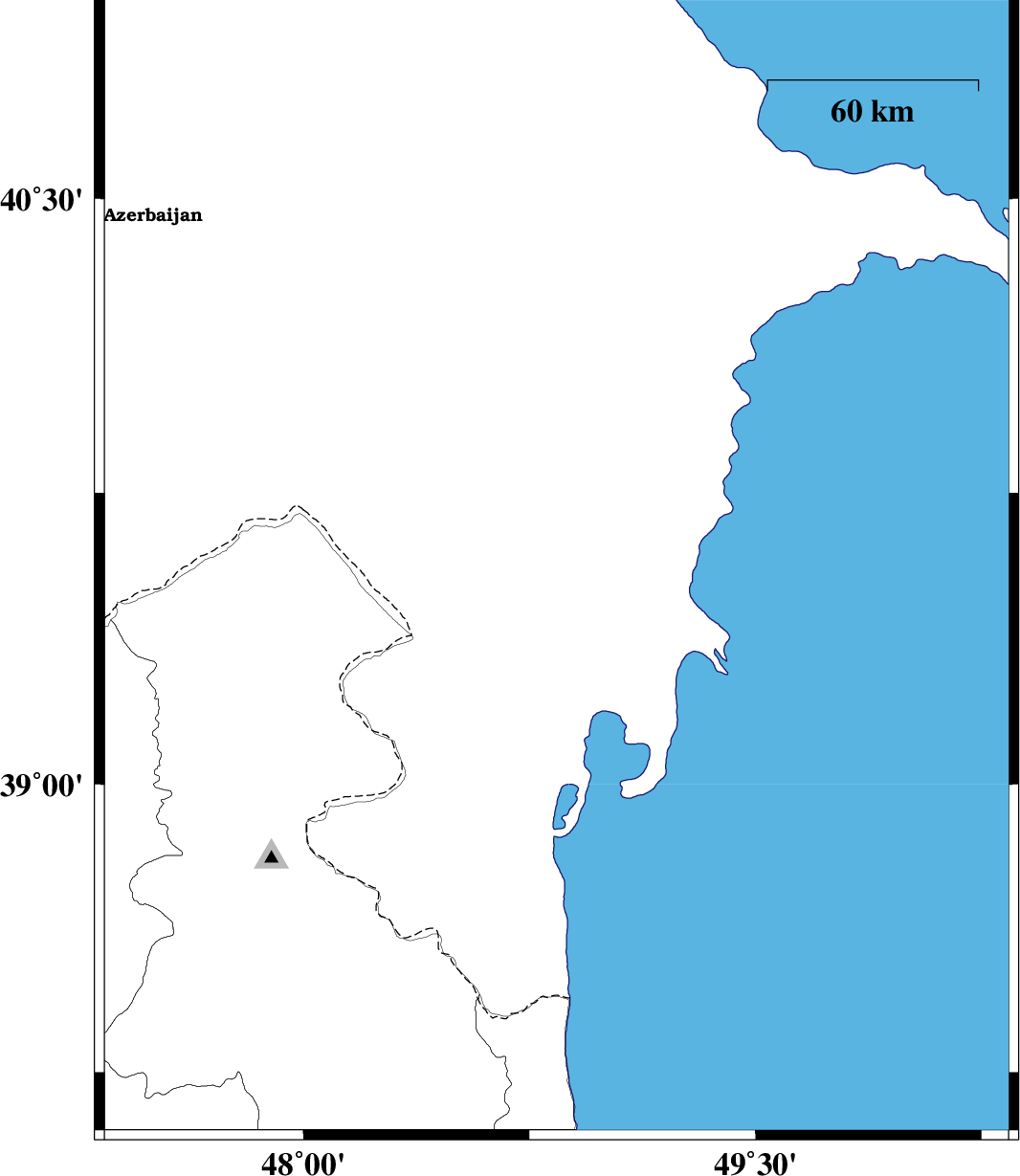 | 2011/07/09 | 00:35:08.3 | 05:05:08.3 | 38.2 | 49.28 | 25 | ML:2.8 | Caspian Sea, 44 km South-East of Astara | ||