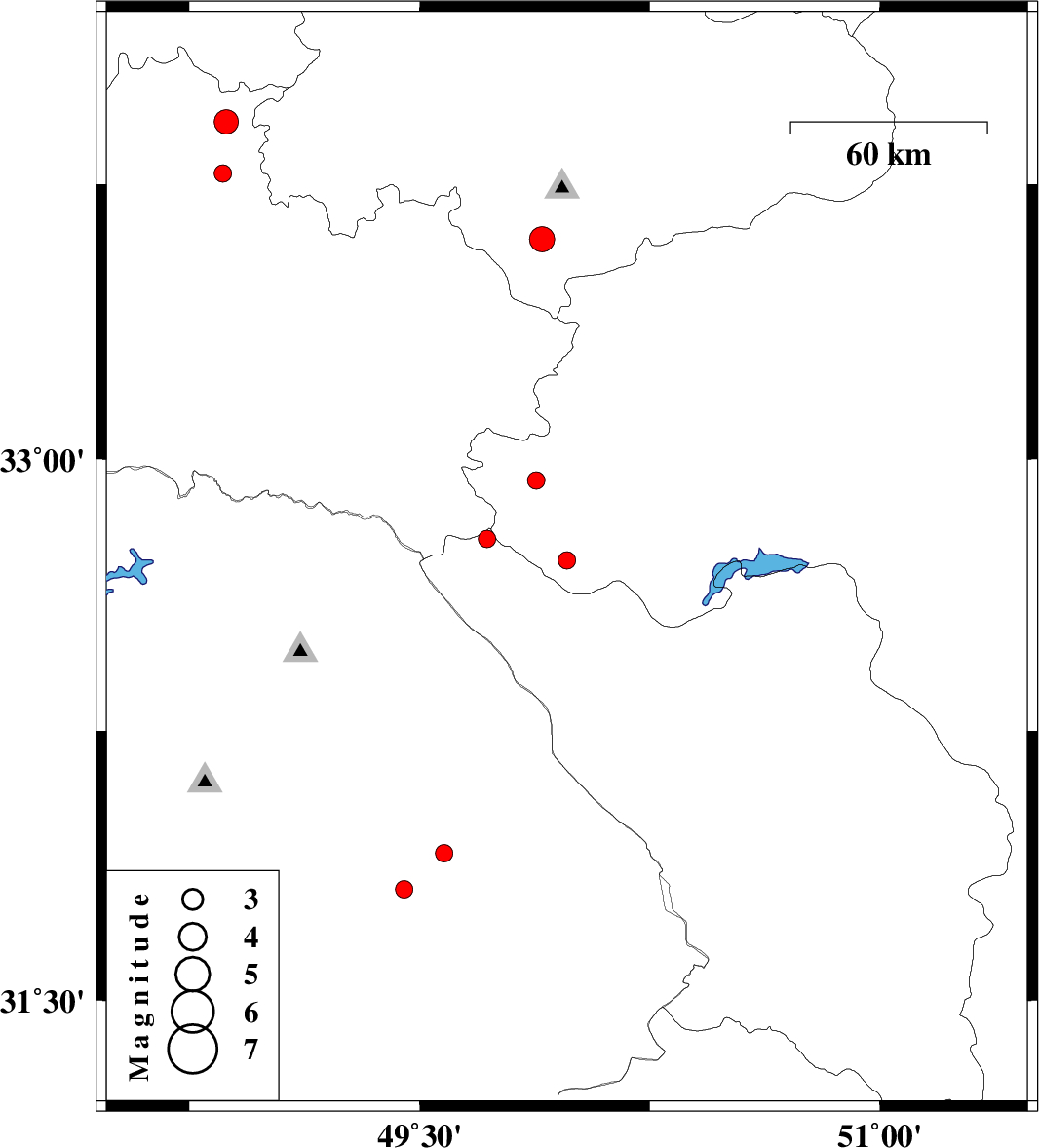 | 2011/06/29 | 03:28:56.0 | 07:58:56.0 | 33.6 | 49.9 | 6 | ML:3.7 | Markazi Province, 17 km West of Khomeyn | ||