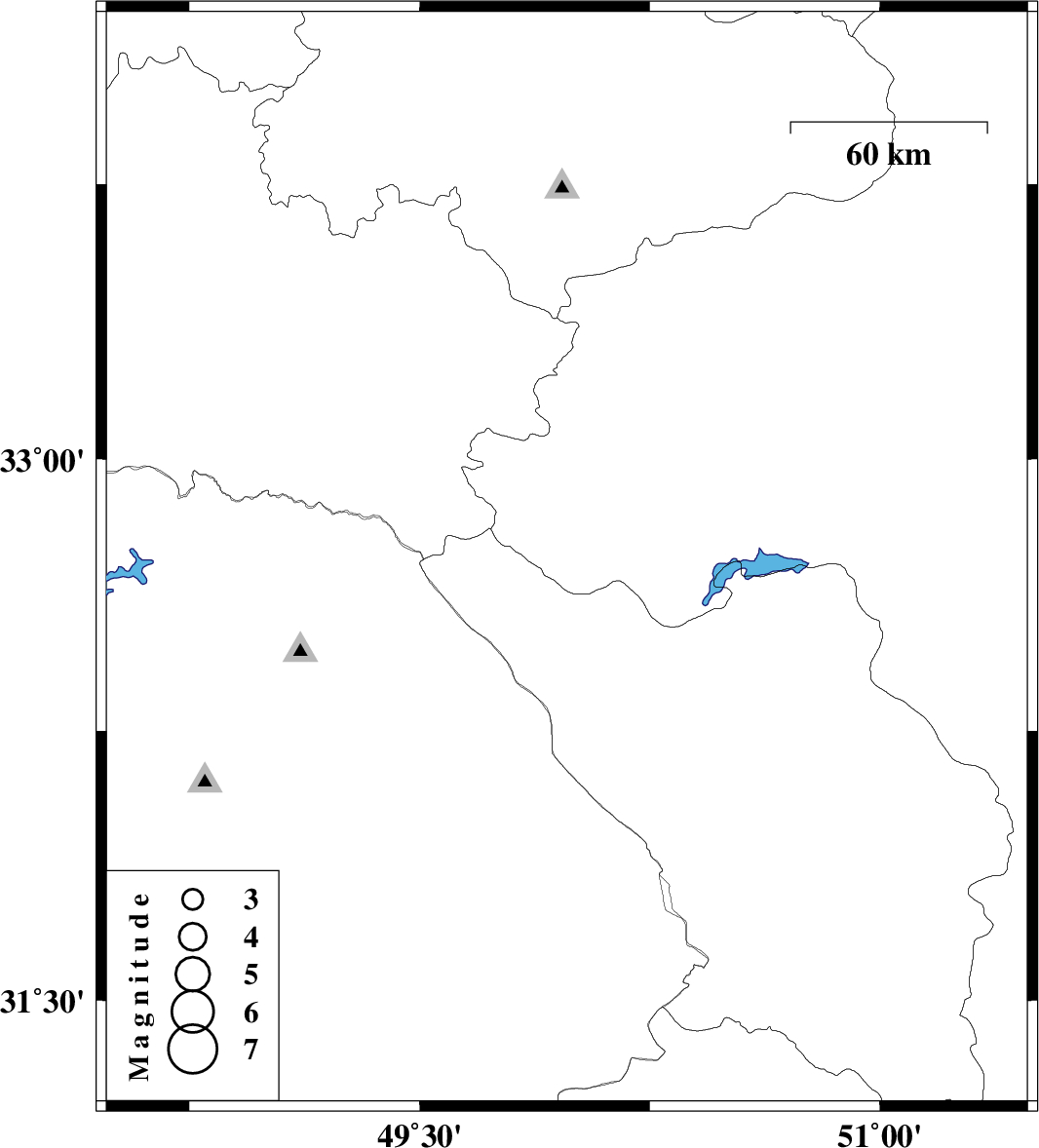 | 2011/07/20 | 22:52:04.0 | 03:22:04.0 | 32.72 | 49.98 | 7 | ML:2.5 | Esfahan Province, 27 km South-West of Fereydunshahr |