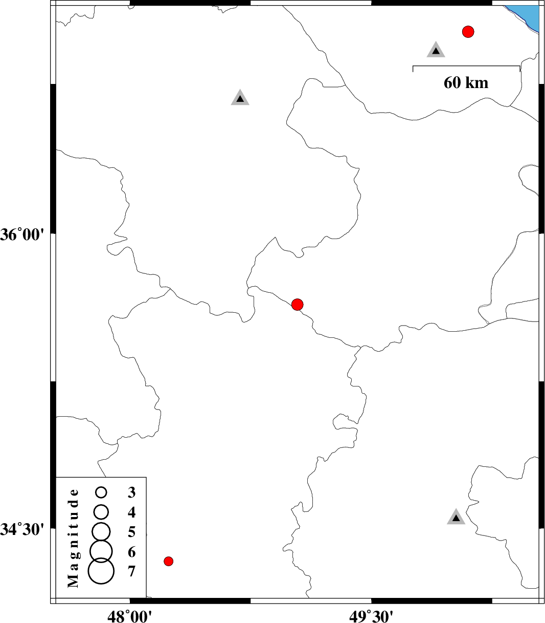 | 2011/06/22 | 16:30:51.1 | 21:00:51.1 | 34.33 | 48.24 | 14 | ML:2.6 | Hamedan Province, 19 km North-West of Nahavand |