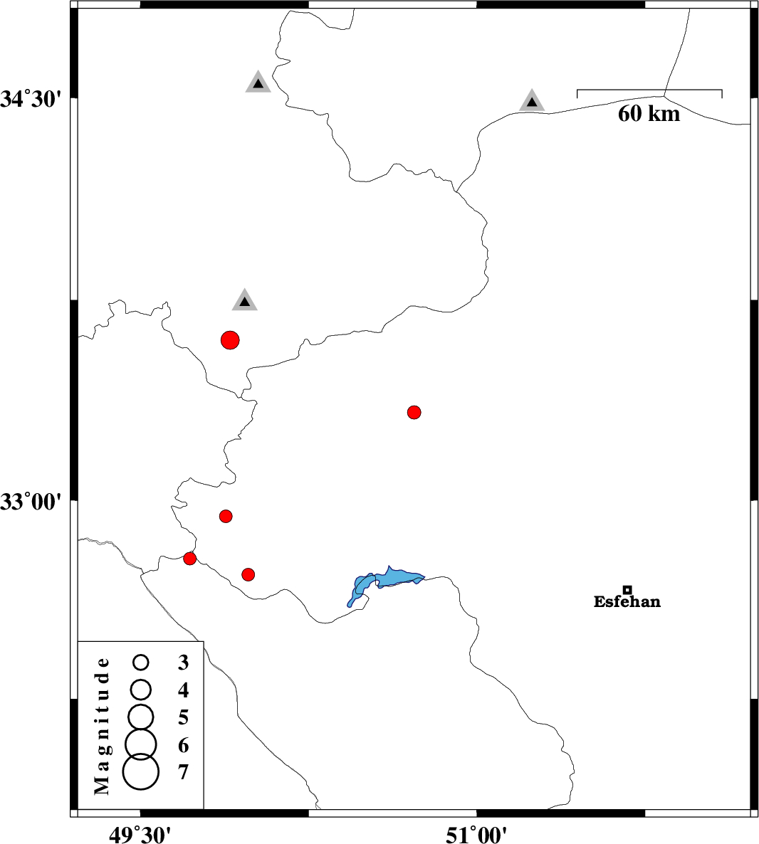 | 2011/06/29 | 03:28:56.0 | 07:58:56.0 | 33.6 | 49.9 | 6 | ML:3.7 | Markazi Province, 17 km West of Khomeyn | ||
