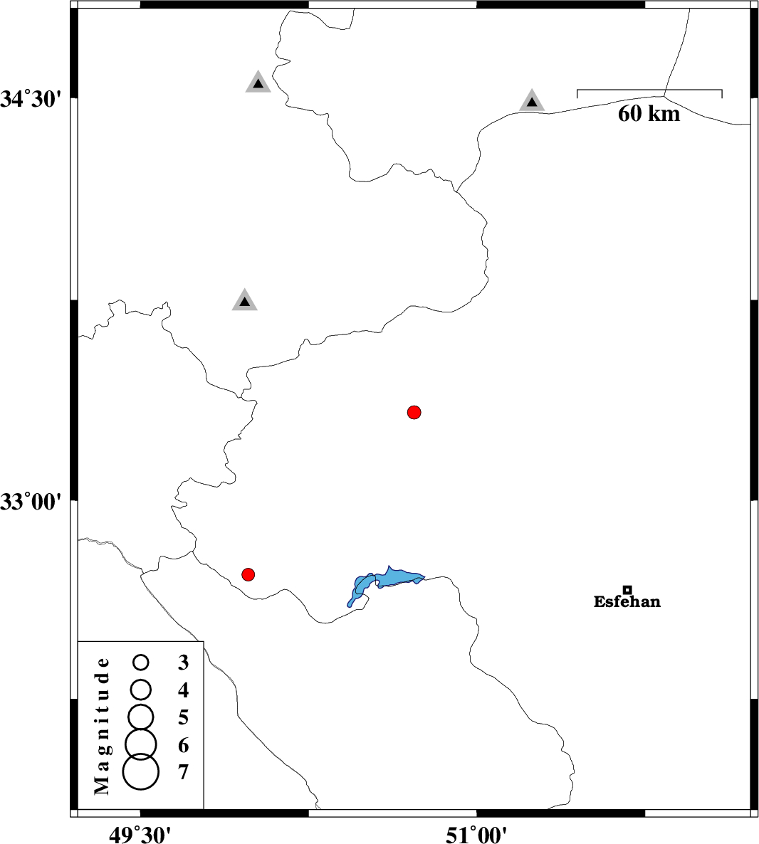 | 2011/07/20 | 22:52:04.0 | 03:22:04.0 | 32.72 | 49.98 | 7 | ML:2.5 | Esfahan Province, 27 km South-West of Fereydunshahr |